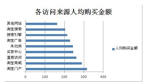 其次,通過淘寶廣告、搜索等引入的新客也相對較多,但客單水平就不高。